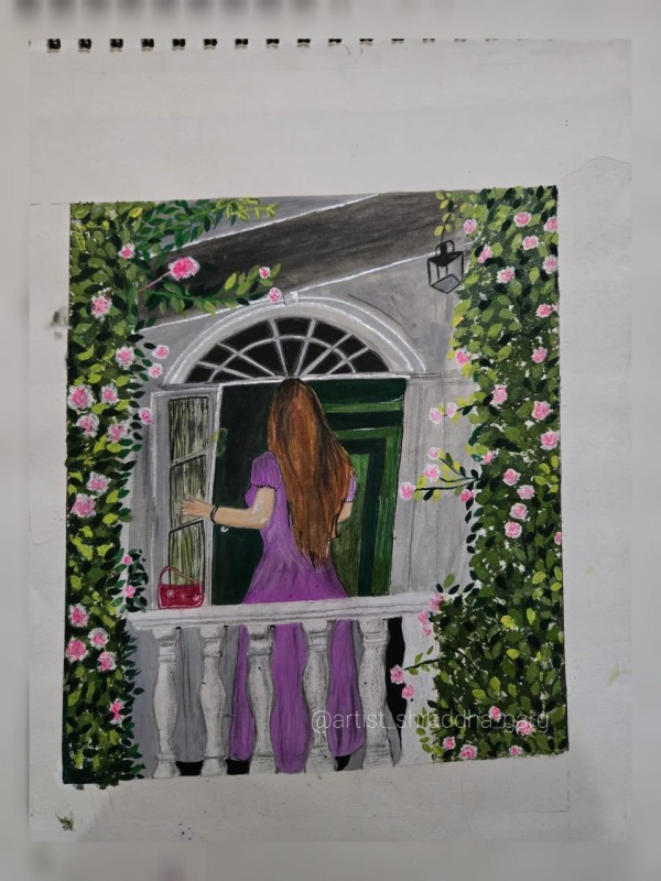 This painting depicts a young princess living in her majestic castle, surrounded by elegance and wonder. Her serene presence reflects grace, imagination, and the charm of a fairytale world."
